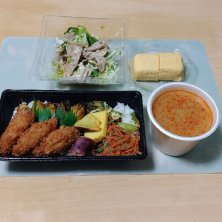 晩ご飯は、ほっともっとのお弁当。 海鮮とじ丼に旨辛豚汁、唐揚げ黒トリュフチーズ