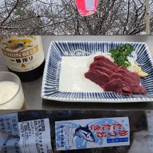 3/26 ② 長野県上田市 馬刺し、ビール大瓶😋 馬肉うどんが名物みたいですが食べず 上田城跡の桜は開花してませんでした(>_<) 3/31 頂いた鰹たたきめちゃ美味しかった😋