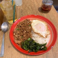 ランチは久しぶりに旦那さんと2人で外食♪ わたしはガパオライス。 奥に見えるのは、旦那さんの混ぜそば。 どちらもピリッと辛くてとても美味しくて、 美味しそうなクラフトビールがあって迷ったけど、お互い仕事中なので我慢我慢(笑)
