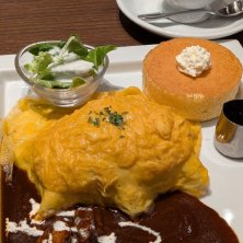 お腹大丈夫でした👌 でも相変わらず緩めのお腹⤵︎ そんなことはもう気にせず食べてやるって事で、前から食べたかった星乃珈琲店のスフレパンケーキ🍓食べました🥞 おいしーねー☺️
