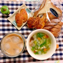 4連木✨ だけど体調イマイチ💧気分も⤵️ 食欲ないけど野菜スープと美味しいパンは食べられる😋 特別なことなんて何もしなくて良いから普通にゆっくりのんびりしよう✨