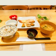 サーモンの塩麹クリーム定食🐟❗️ 五穀ひじきご飯で🍚 小鉢が多くて楽しくいただきました😆