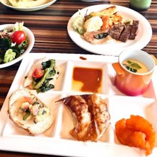 アパ社長に遭遇 開業記念ビュッフェ。 両国のアパホテルが開業直前にコロナの療養施設になっちゃって、ようやく開業。 中に温泉やプールもあるんだけど、開業記念ビュッフェやってたので行ってみた。 夫と息子はデイユースプランで温泉入りに行ってた。 写真は夫チョイス。 揚げたての天ぷらとか、ステーキが直接サーブしてもらえるようになってた。 ホテルの中で赤いスーツの目立つ人を発見、アパ社長だ〜。 息子はこんにちは!と声をかけてもらったけど、びっくりしてフリーズw 夫が代わりにご挨拶してました。
