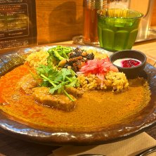 【チキンとキーマのあい盛りカレー】 木曜日だけどフライングでカレー😅 ここは前回初めて訪れた時 そのエスニックなスパイスが印象的だったので 品川に来たついでにまた寄ってみた カルダモン入りのお冷に パクチー入りのキーマカレーと スパイシーなチキンカレー🍛 脳が覚醒するような香りが心地よい とても美味しゅうございました〜😋