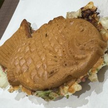 🥢たい焼きの中にまさかのお好み焼き⁉️ 外はカリッと、中はふわっとキャベツたっぷりでソースの香りがたまらない✨ これは選んで大正解の一品でした😋 #筋トレ男子 #たい焼き #お好み焼きたい焼き #変わり種グルメ #B級グルメ #もっちりカリカリ #大正解
