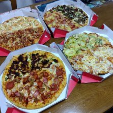 いい日ドミノ日🍕 50%でゲットヽ(=´▽`=)ノ 〈ガーリックマスター&たーーっぷりガーリックシュリンプ〉 〈炭火ビーフ&トロピカル〉 〈ダブルモッツァレラ&ジェノベーゼ〉 〈高麗カルビ&ギガミート〉