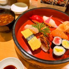 すし定食1半 1570円! あー、やっぱりここのお寿司美味しい😋 平日毎日お弁当持って行った甲斐あって贅沢した🥰 でも、夜はマグロ一貫440円とかだから、ランチはだいぶお得❗️また毎日弁当頑張ってこよう!