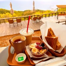 絶景見ながら美味しいお昼ご飯(*´~`*)ŧ‹"ŧ‹"ŧ‹" 時差投稿✨ シナモンバナナトースト アサイボール バナナジュース ホットティー