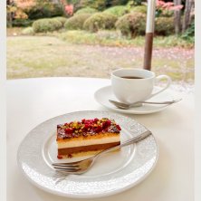 東京都庭園美術館で「永遠なる瞬間 ヴァン クリーフ&アーペル —— ハイジュエリーが語るアール・デコ」を観た後、テラスでお茶。ほんとはお腹が空いていたから鑑賞の前にお茶しようと思ってたけど混んでいて、予約ノートに名前を書いて展覧会を観て回ったあとようやく順番がまわってきた。