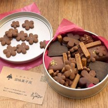 なんてかわいいんでしょう😍✨ これは遅れバレンタインなので今日ね❤️ グルテンフリーで白砂糖不使用、そんなことは私はどうでも良いけど、ちょっとおやつを少なくするとかつまらんことを言い出したから滋味菓子屋のなら良いかなと🤣美味しいしね ♡バレンタインふきよせクッキー缶♡ シナモンプレッツェル(角柱) ココアそばボーロ(花 大小) チャイのショートブレッド(四角チョコがけ) オートミールと金柑のロッシェ ココア蕎麦粉クッキー(花にチョコディップ) ブラックココアクッキー杏仁クリーム(ハート)