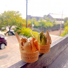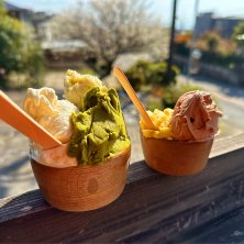 こちらもまたまた📍しておいたジェラテリア🍦🧡 ピザのとこと同じ経営かな? ここの界隈、ヘルスコンシャスなお店が軒並みあって にぎわいエリア。嬉しい♥️ 粗糖や素材にもこだわってあって 優しいおいしさ🥰 急遽、温泉も入って帰る🏡 八朔、黒麹甘酒、チョコレート プラナリア、バニラ、かぼちゃ白たまり(醤油)