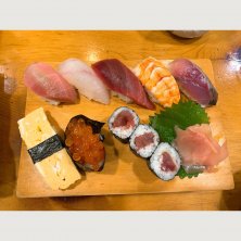 上にぎり1900円 中トロ ホウボウ 地物 赤身 海老 オアカムロ 地物 玉子 塩筋子 鉄火巻き 普通のお寿司でした 伊豆ご飯記録