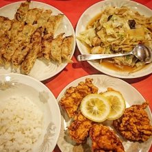 晩御飯はまたまた#町中華 ‼️🍜 伊勢の#太極殿 で#野菜炒め 、#焼餃子 、#唐揚げ と小ライスをいただきまーす🍴🙏 いや~このお店もなかなか⤴️⤴️人気の唐揚げ美味しい😋🍴💕メニューも豊富、また来たいなー😆 #晩御飯 #中華料理 #中国料理 #白飯 #エンザーカイ #餃子