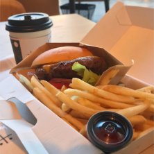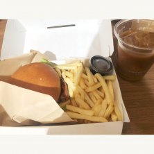 オープンしたばかりの梅小路ポテル内カフェ おおっきな照り焼きチキンバーガーセット それより広くて綺麗でゆーーーったりしゃべれた。 ママ友ランチにおススメ