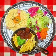 ローストサイコロステーキとハーフパスタプレート (特製カルボナーラ)