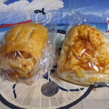昼パンその① 【ポンパドール】 ①横須賀海軍カレーパン 237円 プーメラン型の辛口は無かった😔 しかしラグビーボール型のプレーン?は有った☺️ カレーパン、美味しいですね☺️