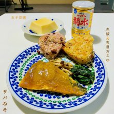 休日の晩ご飯(╹◡╹) 昨日の散歩🚶♂️中に購入した…乾物屋今朝いちのサバみそ(^。^) 今日の散歩🚶♂️中に購入した…御菓子司 伊勢屋のおにぎり(^。^) 菊水ふなぐち(^。^)