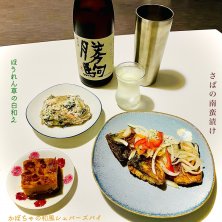休日の晩ご飯(╹◡╹) 忠孝 黒の原点をストレート…乾物屋今朝いちのポテトサラダ…鯵の南蛮漬け…お雑煮(^。^) 食後は娘が買ってきてくれた…抹茶×抹茶 ホワイト チョコレート フラペチーノ®
