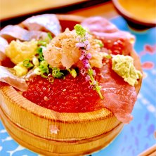 【とと丸食堂】で『三色桶丼』をオーダー あじ、いくら、まぐろ、なめろうが入っておりました。(結果、四色?🤣) 新しく出来た道の駅なのかな? 平日の昼時に訪問しましたが、食券購入まで10分程度かかりました。 食べ終わると列がかなり伸びていたので、タイミングですね! 価格は観光地価格ではありますが、味は文句なしに美味しい 無料のお出汁(コラーゲン入り)も美味しくて最後は、お茶漬けにすれば2度楽しめます