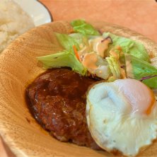 ハンバーグ*目玉焼きのせ、サラダ・ライス付きスープはおかわり自由。という嬉しいランチメニュー(^-^)