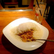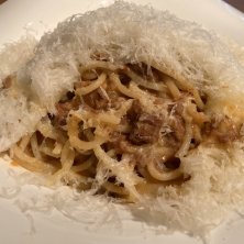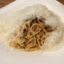 お休みの日のお昼ご飯 かまくらボロネーゼ♡ 脛を痛めたので美味しいすね肉を食べにボロネーゼとナチュラルワインの専門店へ😆 極太もちもち生パスタ 水を加えず、赤ワインでじっくり煮込んだ牛すね肉がゴロゴロ入ったボロネーゼソース♪ 2019年3月に閉店したボロネーゼ専門店「BIGOLI神田寿」の「熟成チーズボロネーゼ」を継承されています。 今日は麺が見えなくなるほどチーズをかけたかまくらボロネーゼを😆