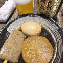 空手の稽古後に道場生仲間と立ち稽古飲み。 来週、強化試合に出るので若手相手に組手をやって気持ちを盛り上げる。 おでんのいい季節になったのでおでんを中心に焼き鳥数本。 大根が染みてて美味しかった