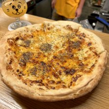 【ビアキチの蜂蜜と三種のチーズピザ】 #胡椒だく ニゴニゴのお供は、胡椒だくのクアトロフォルマッジならぬトリプルフォルマッジ〜♪ いつものように、胡椒たっぷりで! #蜂蜜と三種のチーズピザ #トリプルフォルマッジ #ピッツア #ピザ #ビアバー #ビアキチ #天神南 #cheesepizza #tripleformaggi #pizza #craftbeer #beerkichi
