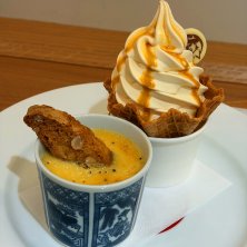 お好きなプリンとソフトクリームの盛合わせ プリンはゴルゴンゾーラサレブリュレプリン