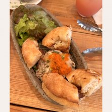 鯖サンドと、奥は食べかけのスプリングアスパラガスのスープ。鯖サンドの上にはとびっこがのっていて変わった組み合わせでおいしかった。 店主もお客さんの多くも外国の方で日本じゃないみたいだった。とびっこは外国の方に受け入れられるのだろうかと気になった。