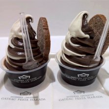 今日の食べ歩きは ⌘ミックスソフト 濃厚チョコレートに サクサクチョコラスク😍 チョコソフトが濃厚すぎて、ラスクのチョコ感全く分からず🤣 底に入ってたザクザクの チョココーティングラスクが絶品😋