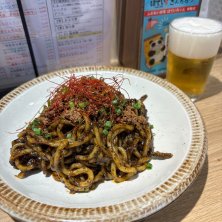 月見鶏皮キムチと四川風麻辣まぜそば。混ぜ合わせると最強。めっちゃ美味いです
