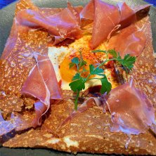 タマゴ、ハム、ポテト、マッシュルームのガレット