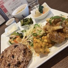 こんにちは。 昨日は泉州へ仕事に来てそのまま和歌山に泊まりました。 宿泊先から少し歩いたところに精進料理のカフェがあるとわかり興味津々来てみました。 おおー精進料理とはいえオサレではないですか❤️ 大豆ミートから揚げミニサンドと薬膳スープセットです。 朝食も遅かったからこの量でちょうどよし(ง •̀_•́)ง 正食と重なるところも大いにあり勉強させていただきまっせ!