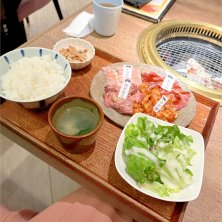ランチ焼肉! 私はホルモン&カルビ定食。 お腹いっぱいだー!