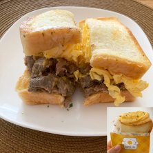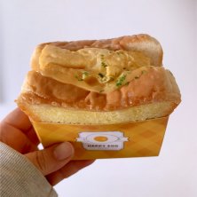 *ベーコンエッグ 韓国発のタマゴサンド。 これって家でもつくれるでしょ、と思いつつも 卵好きとしては一度試さないとね😉 厚切りトーストをバターで焼いて 切り込みにスクランブルエッグとベーコンを挟み 仕上げに甘めのサワークリームとパセリをトッピング 想像通りの味ですが、サワークリームがちょっと甘かったな〜。 でも、500円なので満足度は高いかも🤔 自分好みで再現してみたい😁