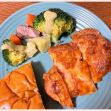 夕飯は食べなきゃいけないパンが あったので ポテトチーズパン チキン南蛮←唐揚げ屋さんで買った トマトシチュー でした😊