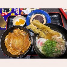 朝飯、昼飯兼で『資さんうどん』 普段はかつ丼ミニうどんセットだけど ミニ丼が充実してて 肉ごぼ天うどん(普通サイズ)にミニかつとじ丼 お支払いも少し変更になってPayPay払いが 自分でバーコードを読み込んて入力するタイプから バーコードをかざすだけに ちょっとだけ楽