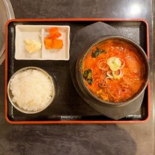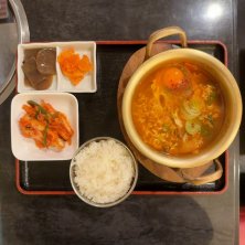 「韓国料理居酒屋・土房(トバン)市ヶ谷店@九段南四丁目」で「味噌チゲ定食」1,000円。気温:15℃。湿度:50%。晴。月曜日。比較的暖い。湿度が低い。秋本番は大歓迎ですが、明日から寒いらしい。最終月曜日が旗日なので、お客人お二人を今日お迎えした。ココで月一回のランチミーティング。今日は「味噌チゲ」を私だけ辛目で。美味いのは当然だが、「チゲ」全体のバランスが絶妙だ。「チゲ」の「基本」は遍く全てコレに収斂すると思う。私は「辛味」をブーストして貰うが、当然破綻しない。「基本」は強い。ごちそうさま。