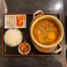 「韓国料理居酒屋・土房(トバン)市ヶ谷店@九段南四丁目」で「味噌チゲ定食」1,000円。気温:21℃。湿度:62%。気圧:1,062hPa。曇。十月の最終月曜日。月末のお約束。御客人お二人をお迎えしての「土房ランチ」。今日はY﨑さんの「味噌チゲ」に全員相乗り。「まさかこんなに韓国料理を食べる人生になるとはね」とお伝えしたら「まさか家でも食べるようになるとは!」とのご返答。本当にそうですよねぇ。ココの「味噌チゲ」はウニョン氏のオモニの味。風邪気味なので辛さ控え目で。しみじみと美味い。ごちそうさま。