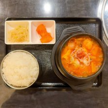 「韓国料理居酒屋・土房(トバン)市ヶ谷店@九段南四丁目」で「キムチチゲ定食」1,000円。曇。木曜日だ。何かとても疲れている。只ひたすらに眠い。何か悪いコトをした覚えは無いんだが。要は寝不足だね。体に気合いを入れるには「韓国家庭料理」が最適。「狙え! カプサイシン効果!」だ。最近「辛ラーメン」「甘辛豚肉炒め」しか食っていない。今日は「キムチチゲ」だ。完璧に「乳酸発酵」した「古漬けキムチ」と「豚肉」の旨味が「土器」で合体する。久し振りにこの美味さを思い出した。次回は「味噌チゲ」かな。ごちそうさま。