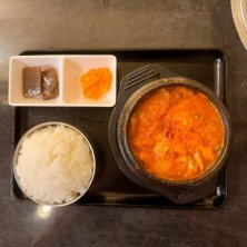 【今日のランチ】 「韓国料理居酒屋・土房(トバン)市ヶ谷店@九段南四丁目」で「日替り:餃子スンドゥブ」700円。晴れたり曇ったり。微妙に暑い。しかも湿度が高い。そんな今週もココからスタート。最近は「餃子スンドゥブ」か「チーズスンドゥブ」が週始めの定番。続く火曜日は「厚切りサムギョプサル」と言うコトになるケースが多い。個人的に「餃子スンドゥブ」は久し振り。「韓国風餃子=マンドゥ」から出る「出汁」が良い仕事をしてくれる。「豆腐」は近所の老舗豆腐店の物だ。実直な仕事が「美味さ」の秘訣。ごちそうさま。