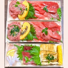 本鮪、ハマチ、サーモンの海鮮弁当(いくらと鰻巻き付き)🤤