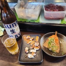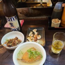 2025.7.13夜はしご③ アジフライおでん出汁、ゲソ焼他、ビール大瓶1本、チューハイ2杯