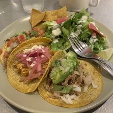 タコス🌮 チキン、ビーフ、ポークの3種セット 980円 お支払いは現金不可でーす。 美味しかった😋