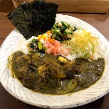 海苔チキンカレーにネバネバ4姉妹(なっとう・オクラ・長芋・モロヘイヤ)トッピング