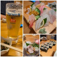 2軒目は魚食べたいってことでや台ずしへ お刺身盛り合わせ イカ天ぷら サクサクで美味しかったです このあと娘の旦那さんも合流して賑やかに飲んで帰宅 電車で寝てたけど夫が電話で起こしてくれて無事帰れました✨