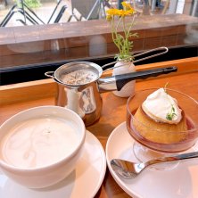 雨で予定が中止になったので、カフェでお茶 デカフェのマサラティーチャイとプリン🍮