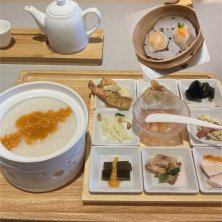 香港粥と選べるミニ麺セット 点心はぷりぷりで美味い╰(*´︶`*)╯♡