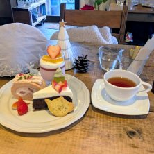 スイーツプレート(アメリカンチェリーのクラフティ、アールグレイミルクティーのレアチーズ、グラスデザート〜フォレノワール〜)、ダージリンファーストフラッシュ ¥2,638 今日もお一人様カフェ。 昨日の今日だけど、激戦の予約が取れたので( ꈍᴗꈍ) レアチーズ、口に入れたら蕩けた〜。