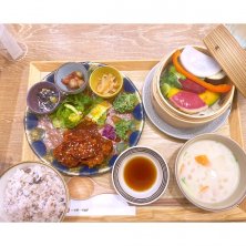 vegeプレート ヤンニョムチキン ラーメン屋と居酒屋ばっか行ってたからたまには健康的なお昼ご飯 ヤンニョムチキンはサクサクの甘辛 温野菜も雑穀ごはんも優しい味 子ども連れが少なくて1人でゆっくりランチ出来てよかった